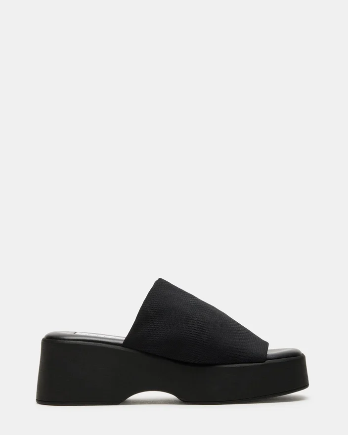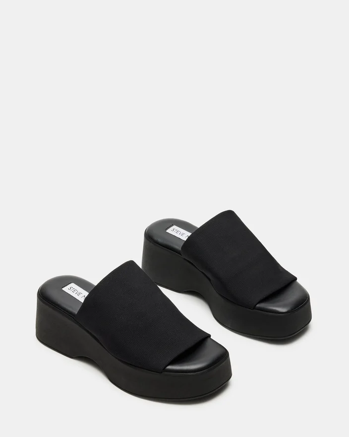 Ekte Sm-fans kan ikke annet enn å elske denne ikoniske sandalen, Slinky. Denne skoen kjennetegnes av en formet platehæl og overdel i elastisk stoff, og er lett gjenkjennelig for alle Steve Madden-fans.