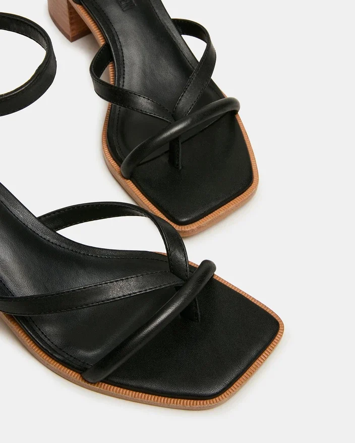 Oppgrader skosamlingen din med Tilly svart skinn, en sandal med firkantet tå, stropper og blokkheler designet for både stil og stabilitet. Med en sikker ankelrem sikrer denne sandalen en trygg passform, mens den solide blokkhelen gir komfortabel støtte for langvarig bruk. Laget av kvalitetsmaterialer, passer den perfekt til antrekk fra dag til kveld, og kombinerer raffinert estetikk med praktisk komfort.