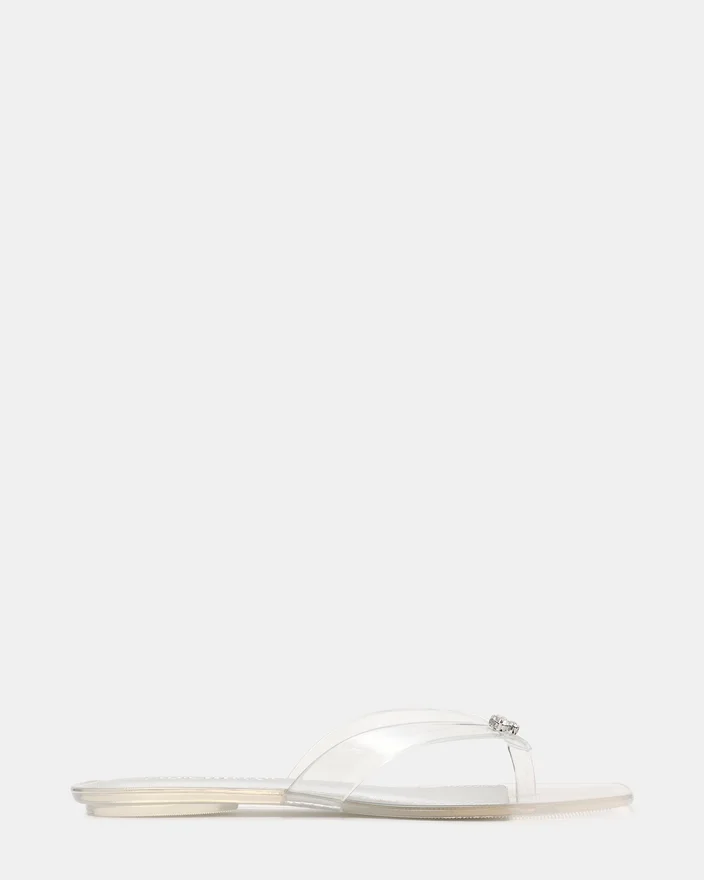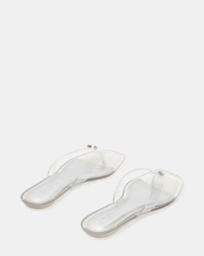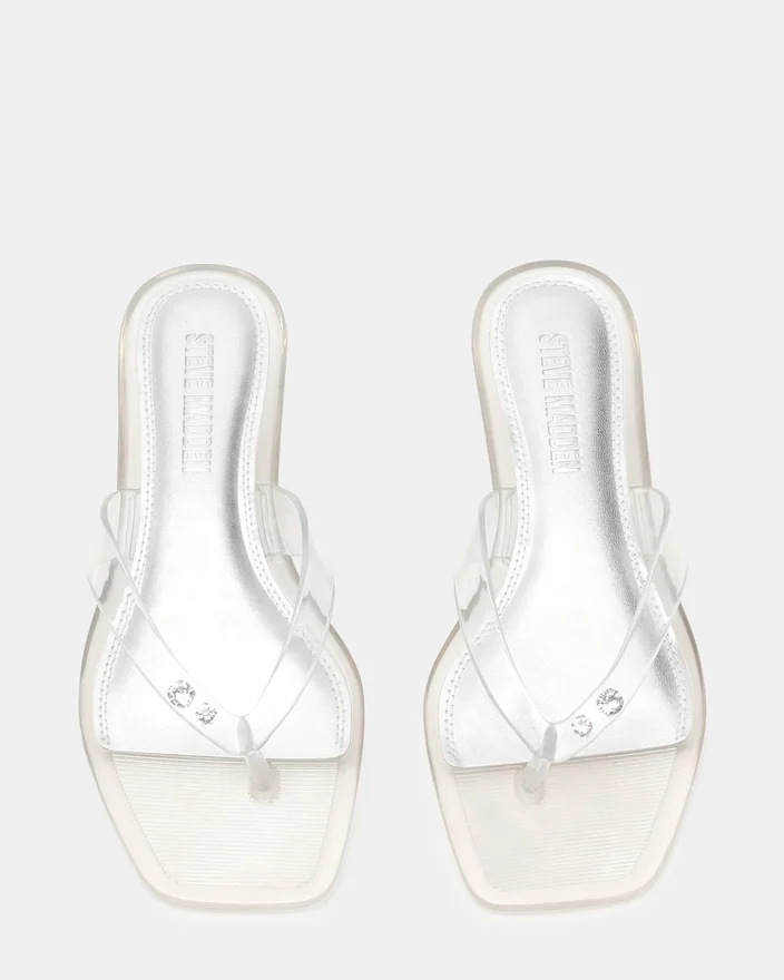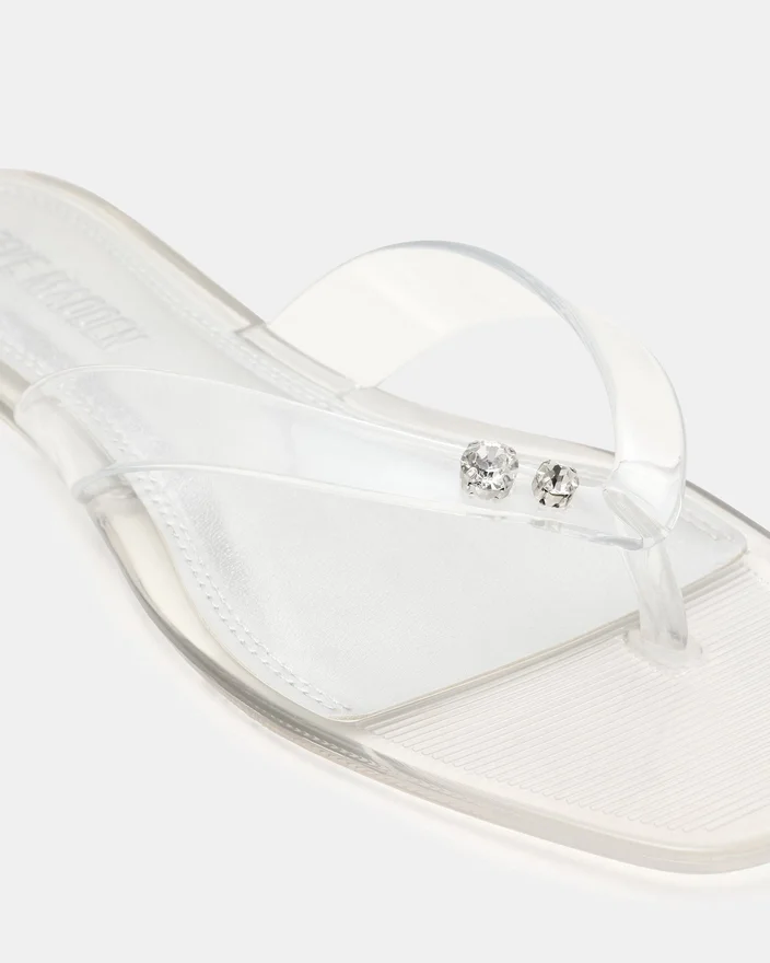 Trella Jelly Clear-sandaler har et moderne design med firkantet tå kombinert med en minimalistisk tårem, og tilbyr både stil og komfort. Den er laget av kvalitetsmaterialer og gir et raffinert utseende som passer til ulike anledninger. Den slanke silhuetten fremhever fotformen samtidig som den sikrer en sikker passform, noe som gjør den til et godt valg for de som søker diskret eleganse i fottøy for varmt vær.