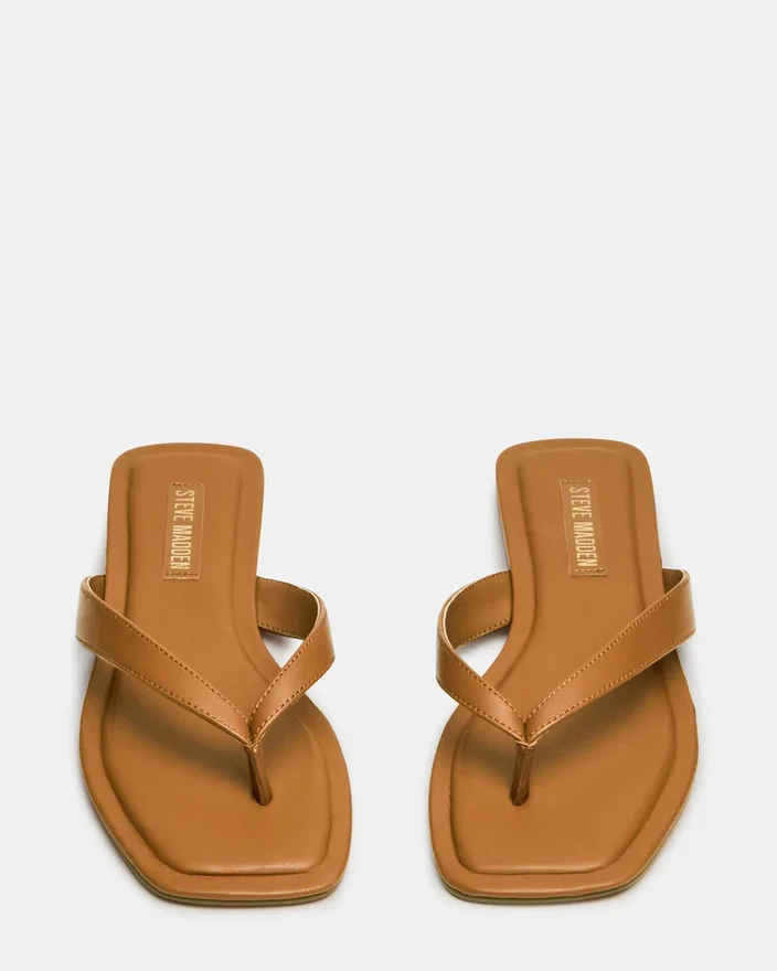 Trella Tan Leather-sandaler har et moderne design med firkantet tå kombinert med en minimalistisk tårem, og tilbyr både stil og komfort. Den er laget av kvalitetsmaterialer og gir et raffinert utseende som passer til ulike anledninger. Den slanke silhuetten fremhever fotformen samtidig som den sikrer en sikker passform, noe som gjør den til et godt valg for de som søker diskret eleganse i fottøy for varmt vær.