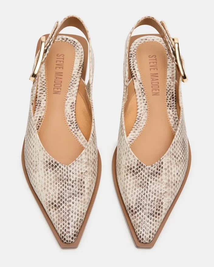 Shay Snake er en ballerinasko med spiss tå og Slingbacks som kombinerer raffinert stil med komfort. Den er laget av kvalitetsmaterialer og har en elegant silhuett som er perfekt for både profesjonelle og anledninger i fritiden. Slingback-designet sikrer en sikker passform samtidig som det opprettholder pusteevnen, noe som gjør den til et ideelt valg for bruk hele dagen. Denne ballerinaskoen balanserer eleganse og praktisk bruk, og beriker garderoben din med et allsidig, ekspertgodkjent fottøyvalg.