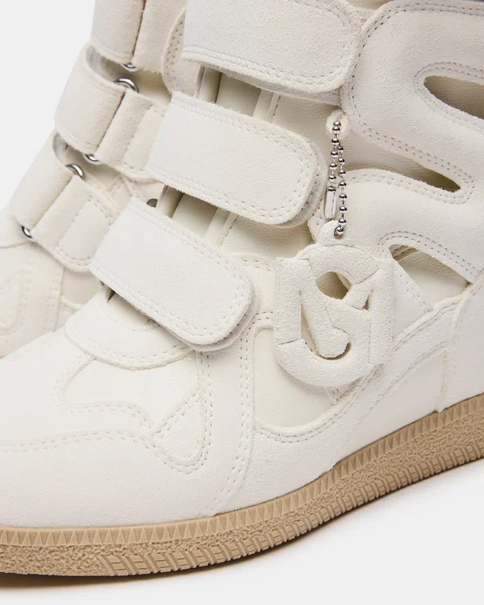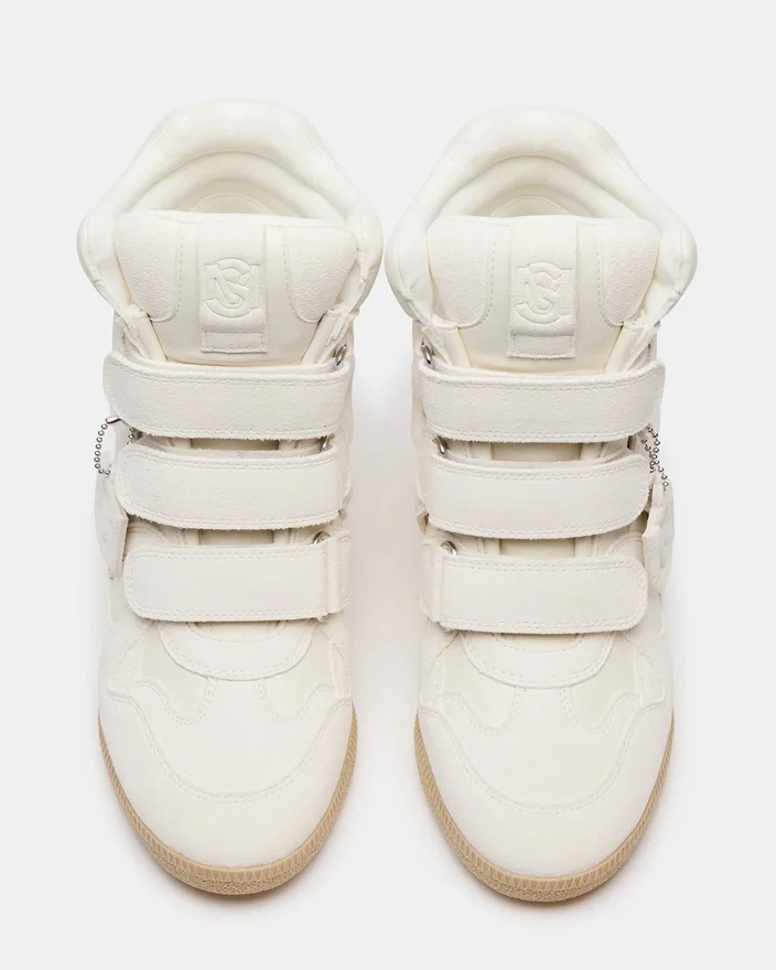 Mavis hvit suede høytopp-Sneaker kombinerer klassisk stil med moderne bekvemmelighet. Laget av førsteklasses materialer, tilbyr den holdbarhet og et raffinert utseende. Borrelåslukningen sikrer en sikker passform og gjør den enkel å ta av og på, noe som gjør den ideell for de som søker både komfort og funksjonalitet. Perfekt for å løfte antrekk fra fritiden med et elegant, profesjonelt preg.