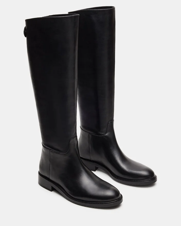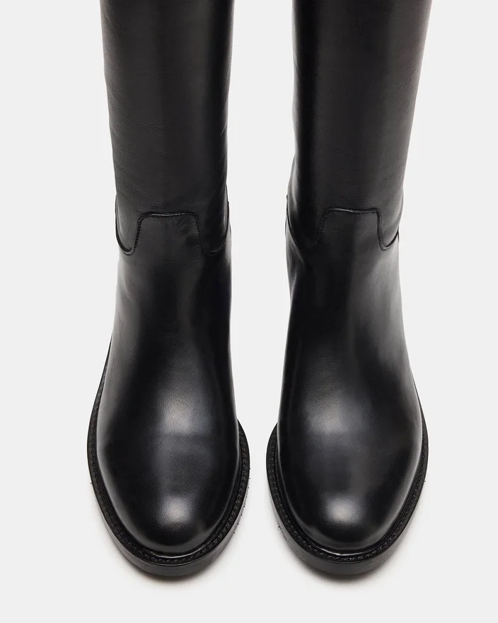 Den knelange ridestøvlen Beren i svart skinn er fagmessig laget og har en praktisk glidelås bak for enkel av- og påkledning. Denne støvlen er laget av materialer av høy kvalitet og er både stilig og funksjonell, og gir støtte og komfort hele dagen. Perfekt for enhver garderobe, denne støvlen er et must-have for alle som er opptatt av mote.