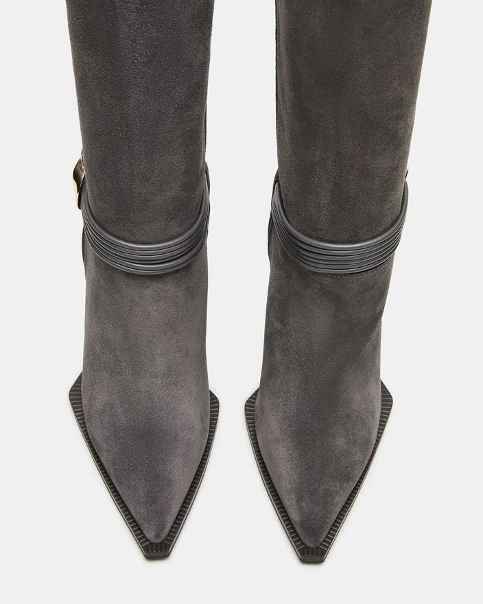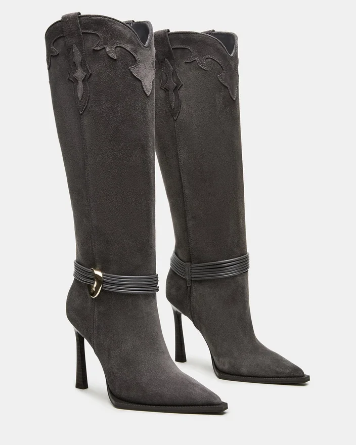 Løft stilen din med Kyndall-støvletten som går til kneet, med en elegant spiss tå og en raffinert hæl. Denne støvletten er laget av kvalitetsmaterialer og har en sofistikert silhuett som fremhever ethvert antrekk. Den knelange designen gir både dekning og eleganse, noe som gjør den til et allsidig valg for bruk fra morgen til kveld.