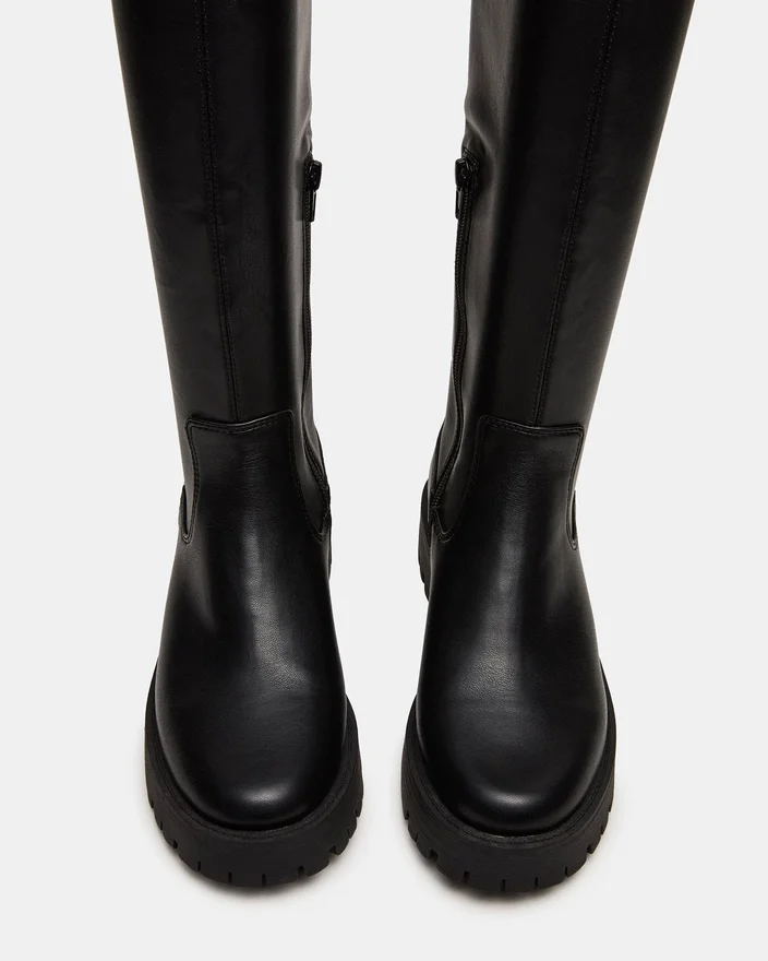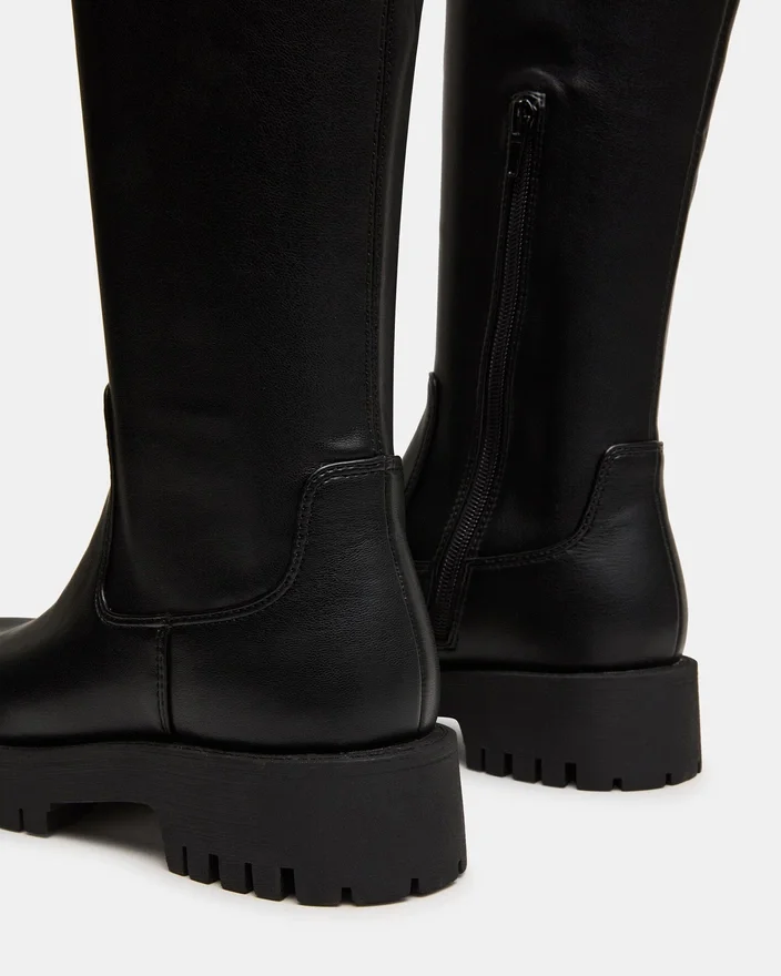 Labelle knestøvletter med mønstret såle kombinerer robust holdbarhet med raffinert stil. Med avrundet tå og en solid mønstret såle tilbyr denne støvletten utmerket grep og komfort hele dagen. Den høye silhuetten gir ekstra beskyttelse og et dristig motestatement, noe som gjør den til et allsidig valg for både by- og friluftsbruk. Laget for de som krever både funksjon og raffinement i fottøyet sitt.