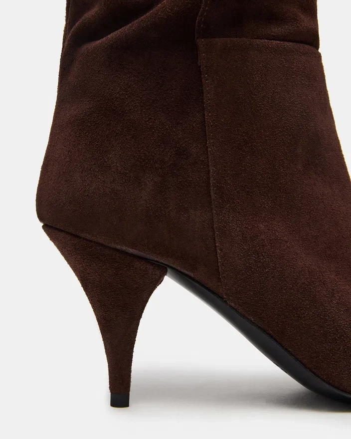 Løft stilen din med Linger-støvletten, med et elegant design med spiss tå og en komfortabel, men likevel stilig, hæl over kneet. Disse støvlene er fagmessig laget av luksuriøse materialer og er perfekte for enhver anledning. Skiller deg ut med selvtillit og raffinement.