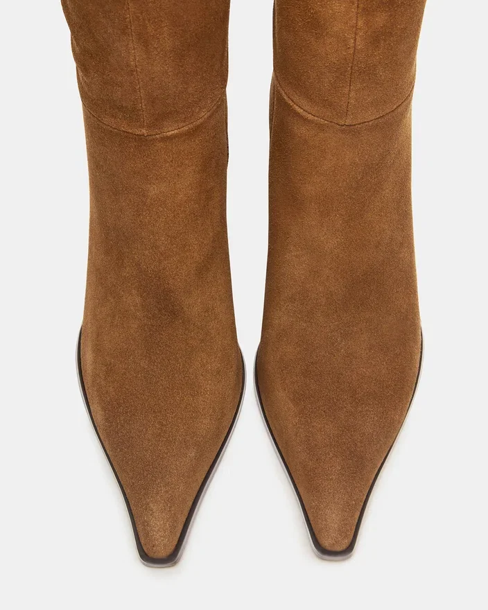 Oppgrader garderoben din med Lingo-støvletten med spiss tå og knelengde. Denne støvletten er laget av førsteklasses materialer og har en elegant silhuett som fremhever både stil og raffinement. Den spisse tåen forlenger benet, mens den knelange designen gir allsidig dekning som er perfekt for overgangssesongene.