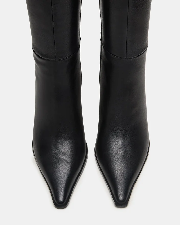 Oppgrader garderoben din med Lingo-støvletten med spiss tå og knelengde. Denne støvletten er laget av førsteklasses materialer og har en elegant silhuett som fremhever både stil og raffinement. Den spisse tåen forlenger beinet, mens den knelange designen gir allsidig dekning som er perfekt for overgangssesongene.