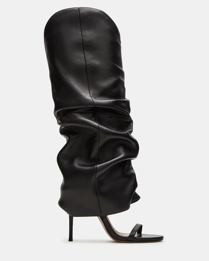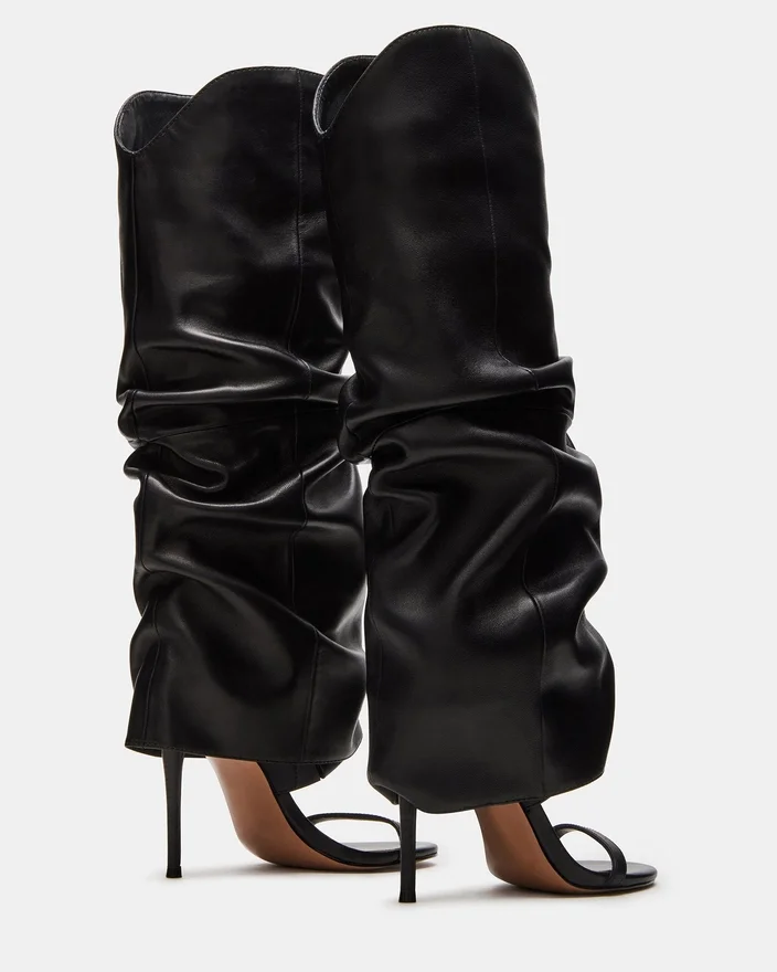 Ravine-støvletterne med mansjett og knelengde er fagmessig laget og designet, og har åpen tå og stilett-hæl for et stilig preg. Den avrundede tåen gir komfort, mens det elegante designet tilfører et snev af raffinement. Løft looken din med disse uunnværlige støvletterne.