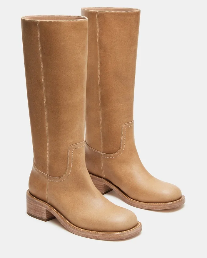 Løft stilen din uten anstrengelse med Riggs Banana Leather-støvletten. Med sin firkantede tå og elegante design er denne støvletten, som går til like under kneet, et must-have for alle som er opptatt av mote. Denne tidløse støvletten gir både komfort og raffinement, noe som gjør den til det perfekte tilskuddet til ethvert antrekk.