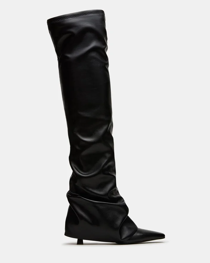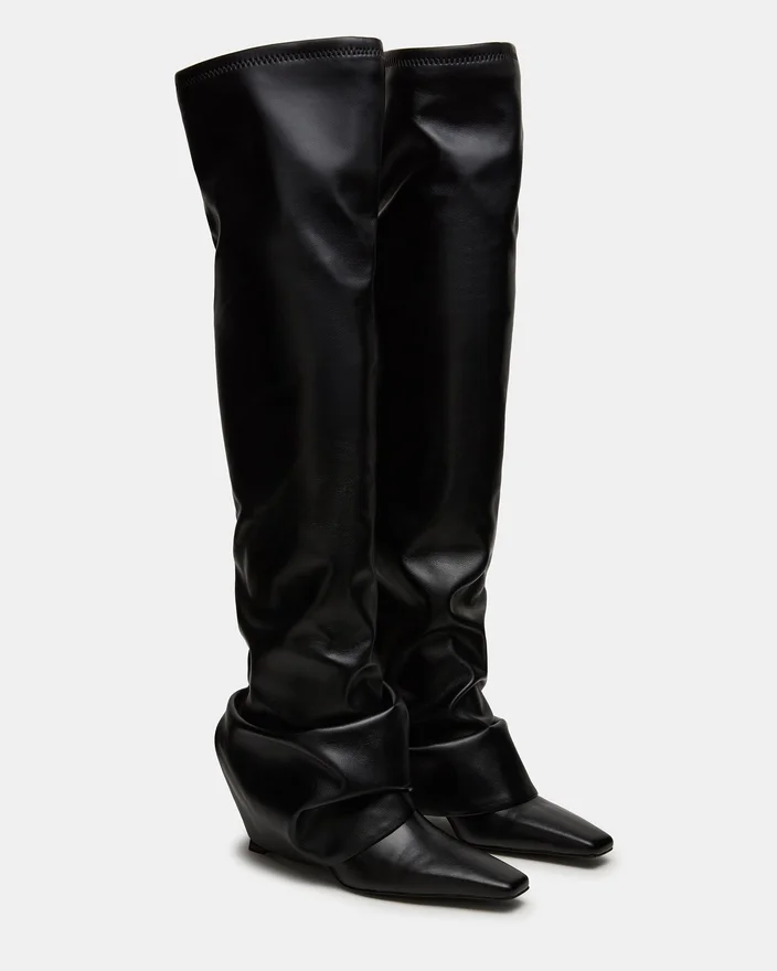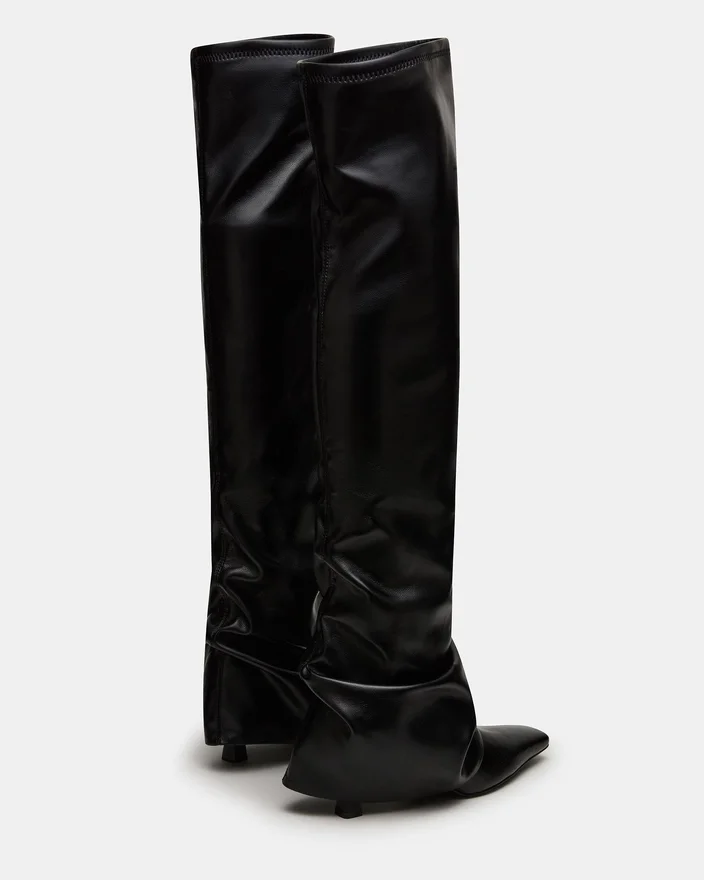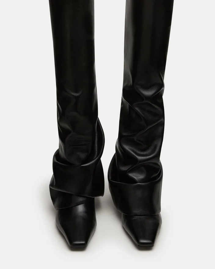 Tatiana Black knestøvletter har en moderne firkantet tå og et karakteristisk fold-over-design, som kombinerer moderne stil med tidløs raffinement. Disse støvlene er laget for å løfte looken din og tilbyr både komfort og kant, noe som gjør dem ideelle for en polert, selvsikker stil gjennom hele sesongen.