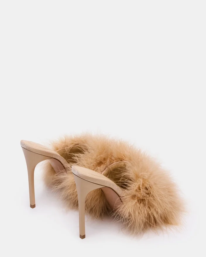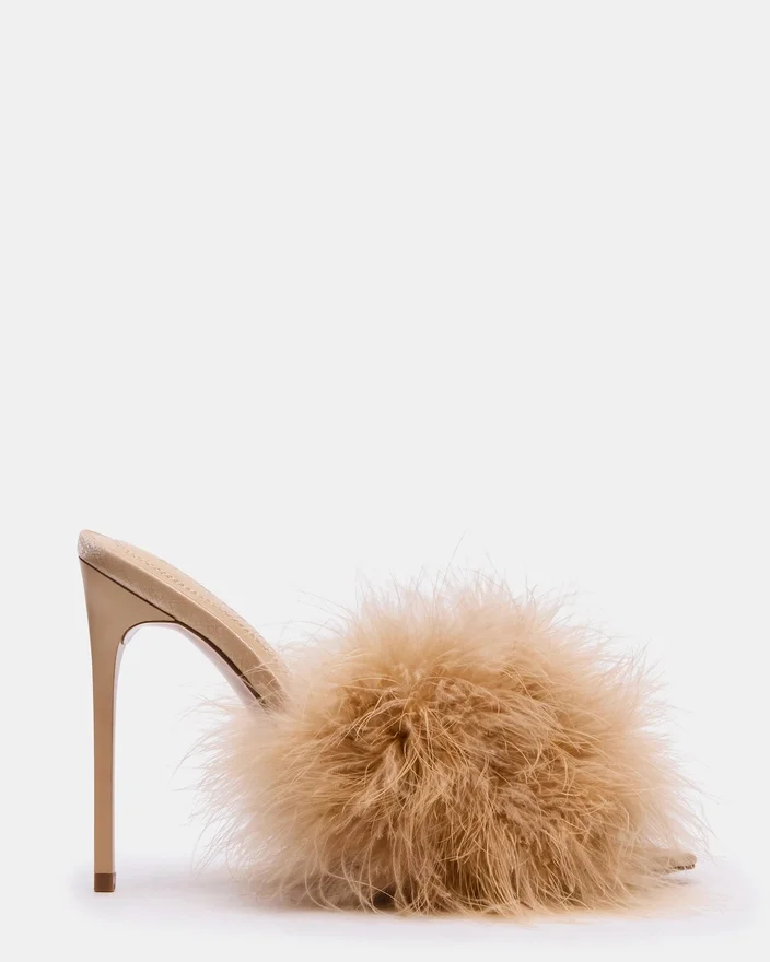 Løft stilen din med Ashbey-muleskoen, som har en elegant silhuett med spiss tå og en slank stilett-hæl for et raffinert utseende. Denne modellen er pyntet med delikate fjær og gir et sofistikert preg, perfekt for å gjøre inntrykk på enhver begivenhet. Slip-on-konstruksjonen sørger for enkel påføring samtidig som den opprettholder et elegant, moteriktig utseende.
