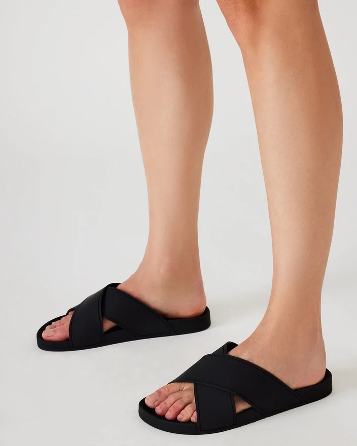 Gå stilig inn i stilen med Katelyn Slide-sandalen. Det kryssende designet på den fremre stroppen gir et snev av stil til denne sandalen for fritid. Disse sandalene er perfekte for enhver avslappet anledning og er et must-have i garderoben din.