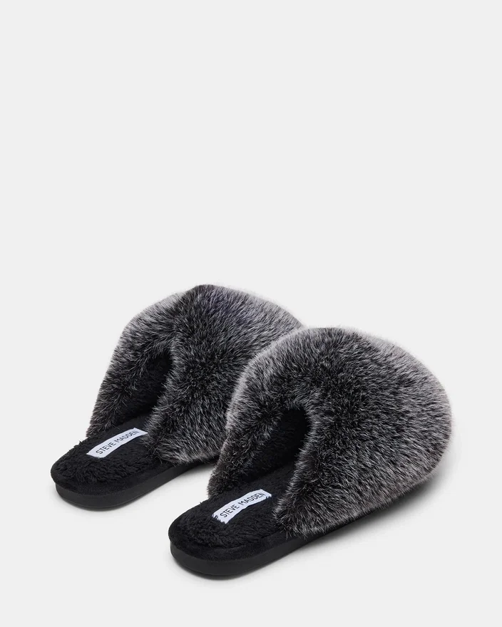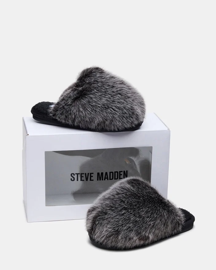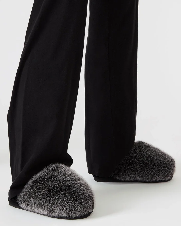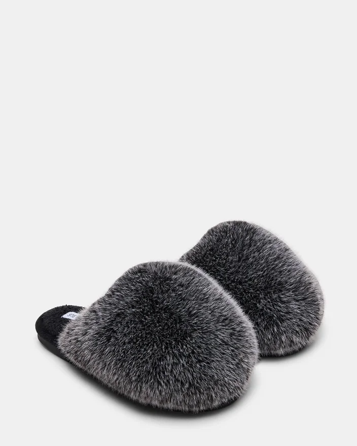 Opplev behagelig luksus med Poof-mules med fuskepels. Disse tøflene er designet for uanstrengt bruk og kombinerer myk fuskepels med en praktisk mulesilhuett, noe som gir varme og komfort uten å gå på kompromiss med stilen. De er perfekte for avslapning hjemme og gir en myk, polstret følelse som holder føttene dine varme hele dagen.