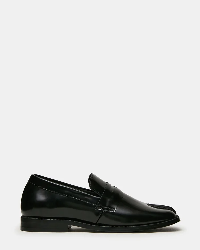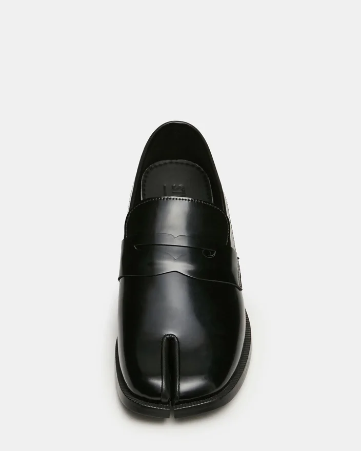 Cosmin Black Box-loaferen gjenskaper en klassisk silhuett med det karakteristiske Tabi-sko-designet, og tilbyr både arkitektonisk interesse og funksjonell komfort. Det karakteristiske designet med delt tå gir et unikt visuelt element samtidig som det gir støtte. Laget av førsteklasses materialer og med fokus på detaljer, representerer denne loaferen et sofistikert valg for de som søker særegent fottøy som balanserer tradisjon med moderne stil.
