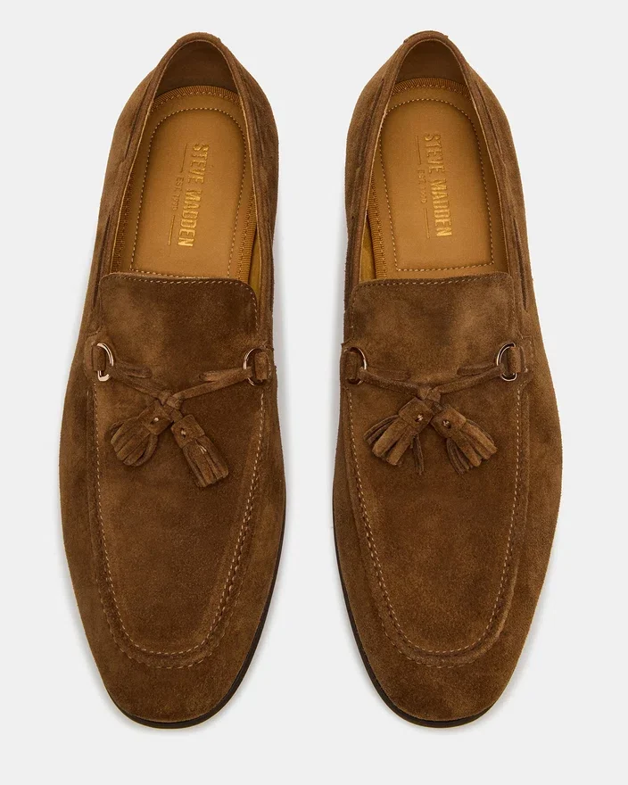 Opplev komfort og stil med Logan Cognac Suede Slip-On Loafer. Kvasten gir denne klassiske skoen et elegant preg, noe som gjør den perfekt for enhver anledning. Opplev luksus og uanstrengt raffinement med dette uunnværlige tilskuddet til garderoben din.