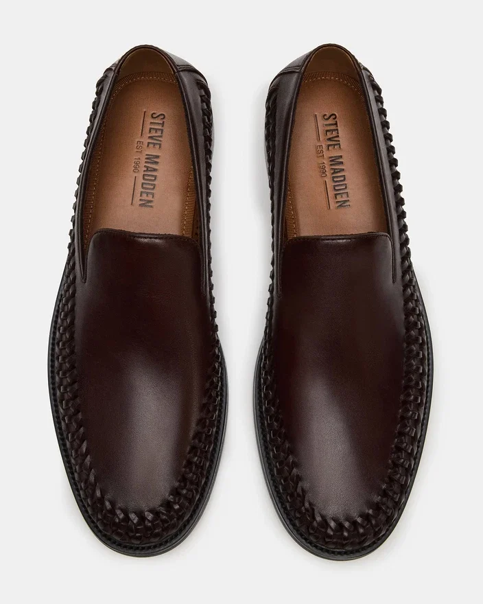 Napoli-loaferen i brunt skinn kombinerer uanstrengt stil med særegent håndverk. Med et iøynefallende vevd design som skiller den ut, gir denne loaferen en sofistikert appell uten å ofre komforten. Konstruksjonen i en allsidig farge går sømløst fra anledninger i fritiden til elegante anledninger. Den praktiske slip-on-modellen gjør den til et ideelt valg for de som verdsetter både praktisk funksjonalitet og raffinert estetikk.
