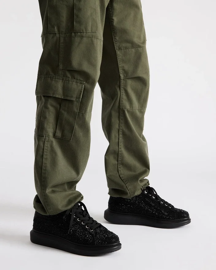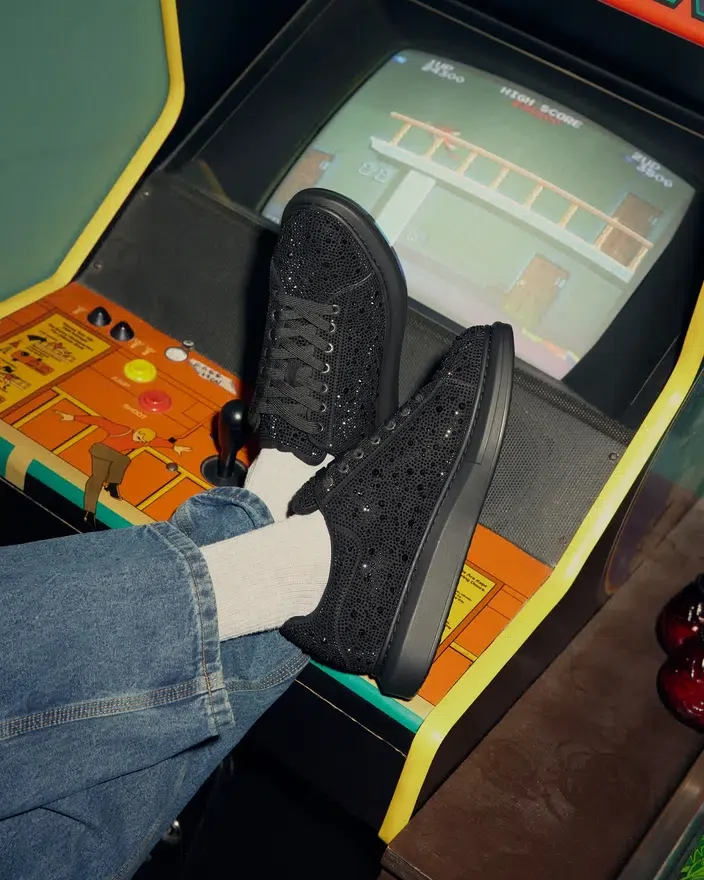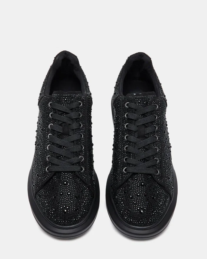 En tykk, flat platåsko gir et solidt fundament for Icebox-sneakeren, som er dekket av rhinestones i ulike størrelser for maksimal bling-effekt.