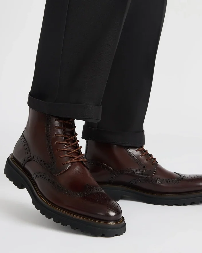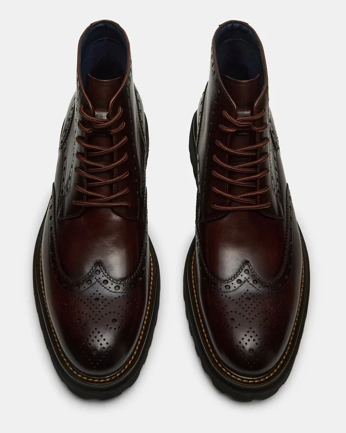 Koda mørkebrun snørestøvlet kombinerer holdbarhet med raffinert stil. Det sikre snøresystemet sikrer en tilpassbar passform, mens den solide sålen gir pålitelig grep og støtte. Denne støvletten er designet for både komfort og lang levetid, og er et uunnværlig tilskudd til enhver garderobe som ønsker en blanding av klassisk håndverk og moderne funksjonalitet.