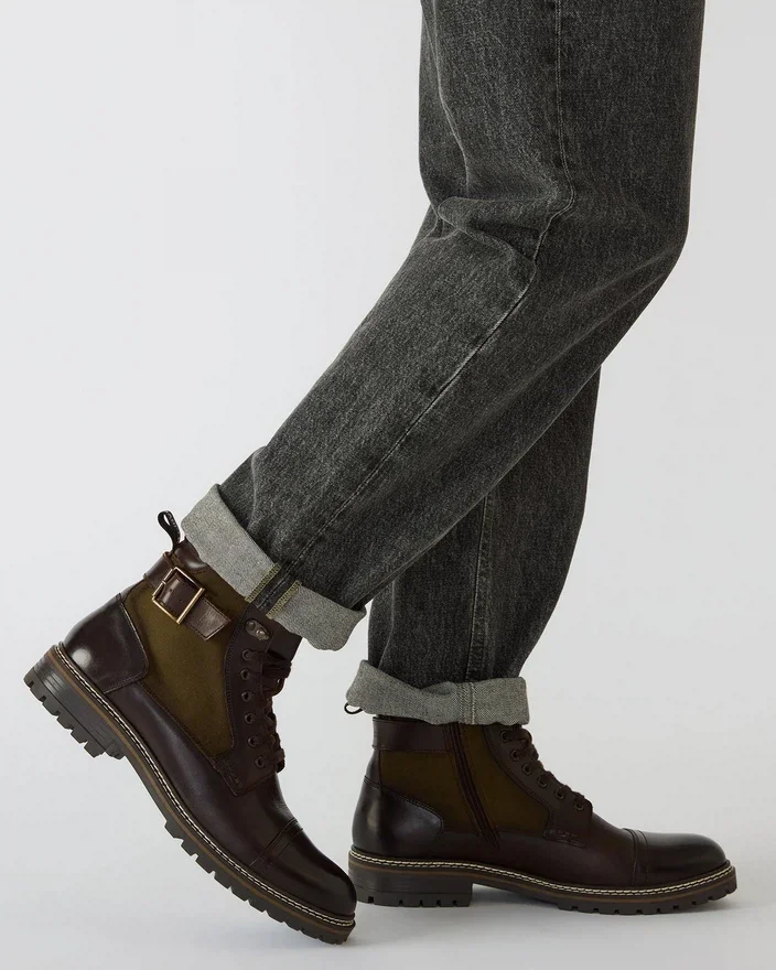 Reid-snørestøvlen kombinerer klassisk håndverk med moderne holdbarhet. Den er laget av kvalitetsmaterialer og har et raffinert utseende som passer like godt til anledninger i fritiden som til formelle anledninger. Den sikre snøredesignen sikrer en tilpassbar passform, mens den solide sålen gir pålitelig grep og støtte for bruk hele dagen. Ideell for de som søker både stil og funksjon i skosamlingen sin.