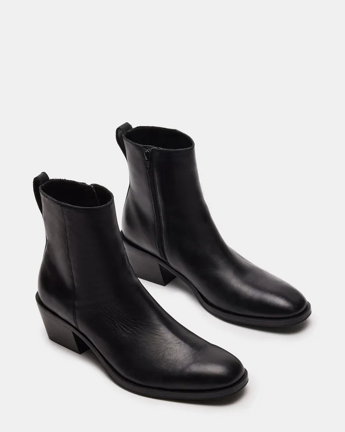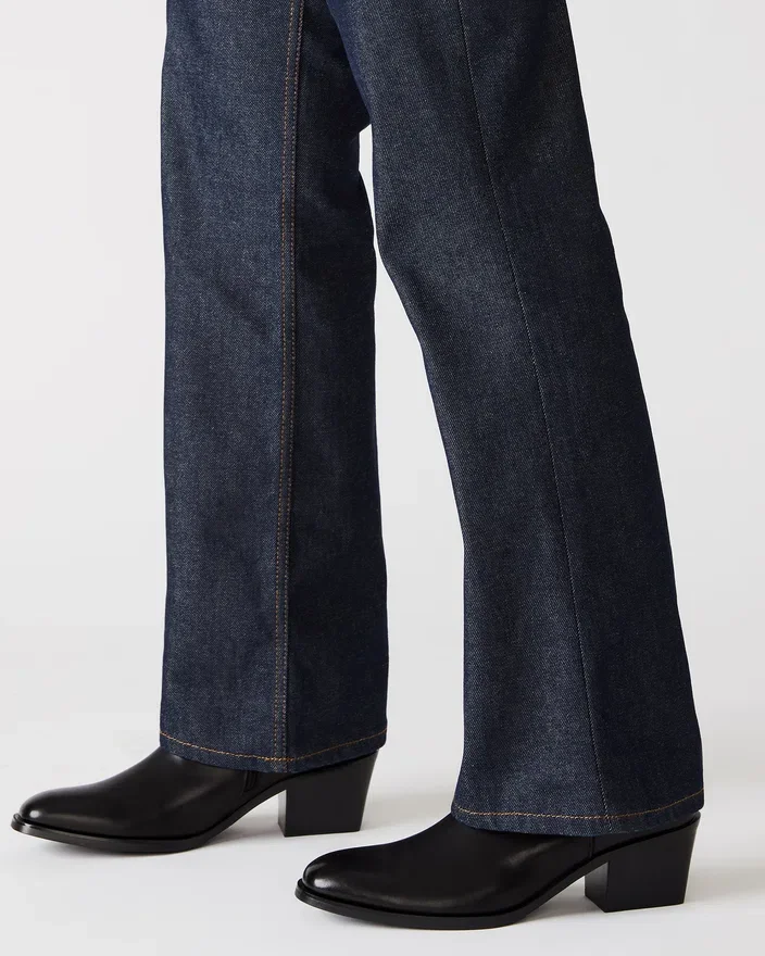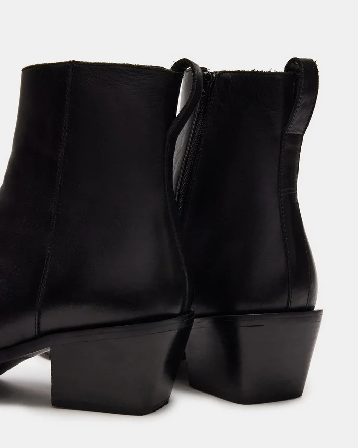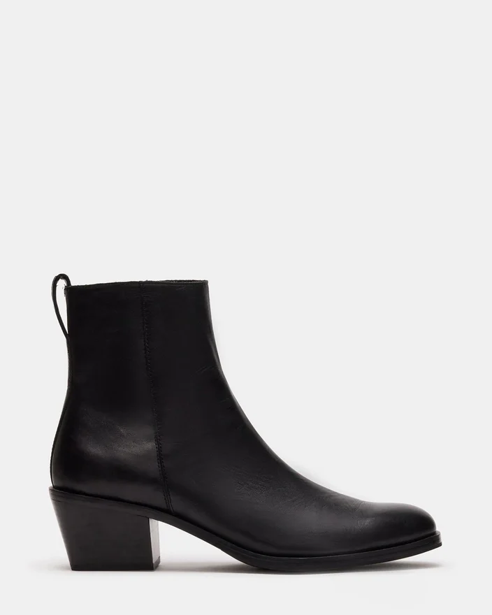 Richie-støvletten kombinerer en vinklet blokk-hæl med en ankelhøy overdel for et oppdatert Western-inspirert utseende.