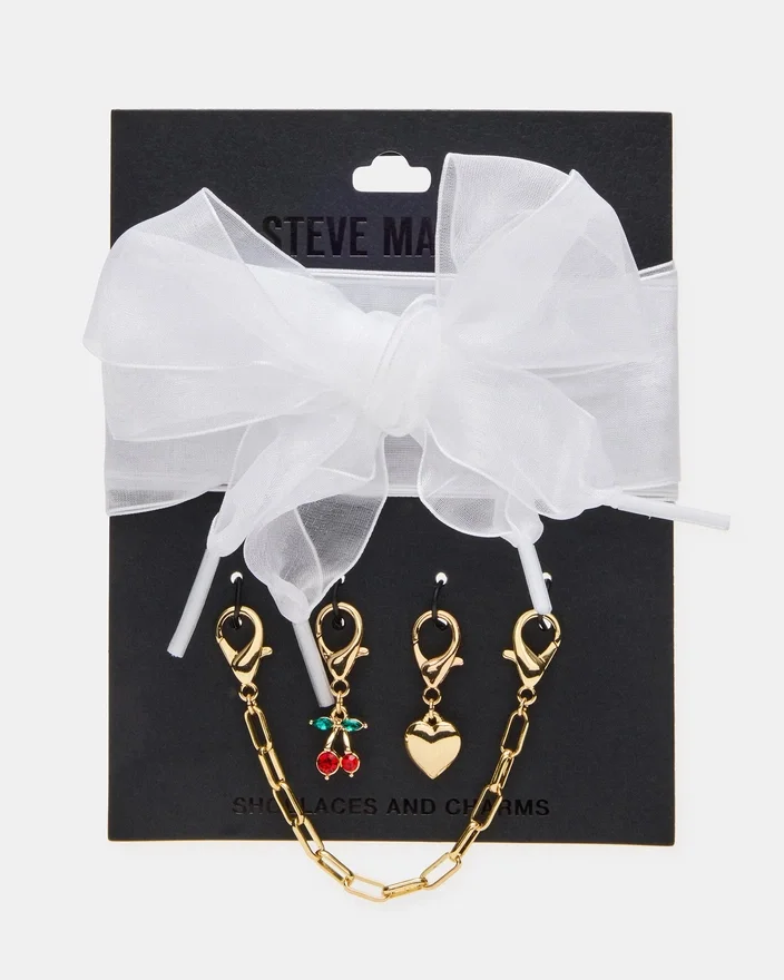 Disse stilige skolissene og smykkene er det perfekte tilbehøret til alle sko. Dekorert med et søtt hjerte- og kirsebærsmykke, gir de et feminint preg til antrekket ditt. Sløyfen er et sjarmerende detalj som får deg til å skille deg ut i mengden. Oppgrader stilen din med disse elegante skolissene og smykkene.