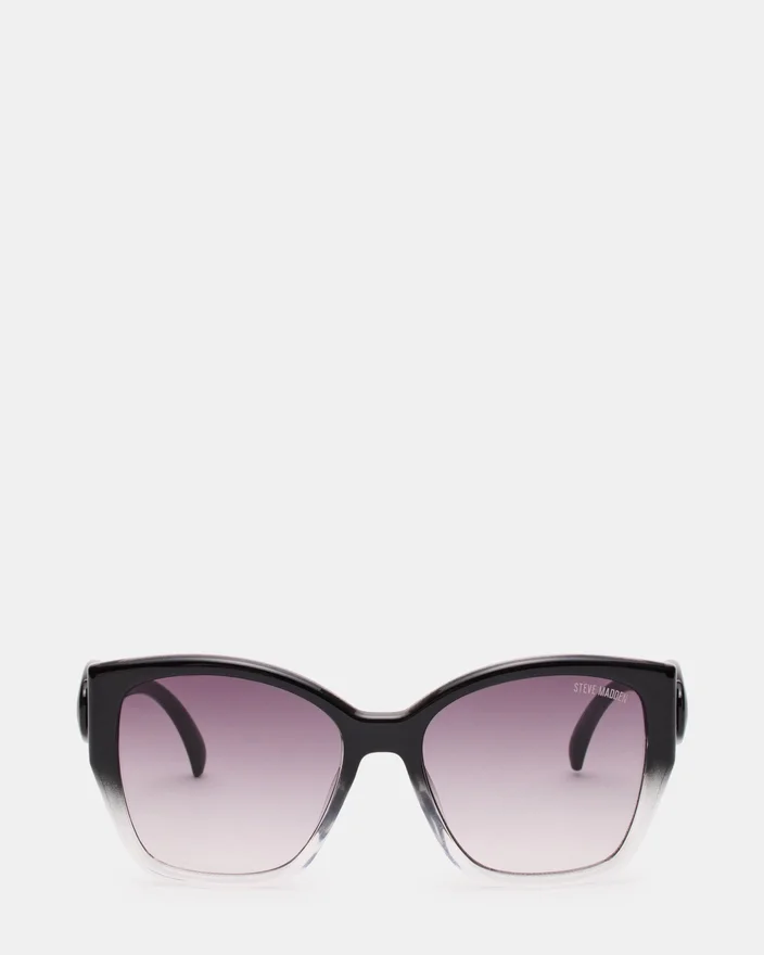 Gjør et dristig inntrykk med Kloe solbriller i svart. Disse iøynefallende cat-eye-rammene har sofistikerte linser med lilla gradient som går vakkert over fra dyp fiolett til lysere nyanser, og tilbyr både UV-beskyttelse og en moteriktig estetikk. Den klassiske cat-eye-silhuetten kler de fleste ansiktsformer, mens gradientlinsene gir et moderne preg. Perfekt for å løfte ethvert antrekk, fra fritidsutflukter til eksklusive anledninger. En tidløs stil med et moderne preg.