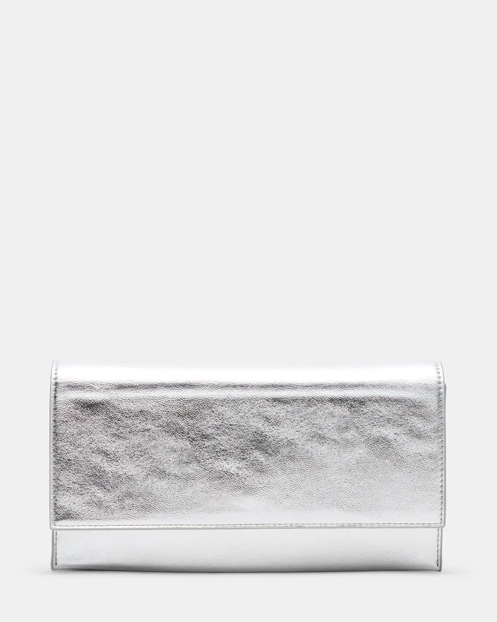 Juliana Bag Silver er fagmessig laget og allsidig, og er et must i garderoben. Clutch-designet tilbyr både praktisk bruk og stil, med magnetisk trykknapp og avtakbar kryssrem med kjede. Den innvendige lommen på bakveggen har plass til kredittkort og verdisaker, noe som gjør den perfekt for enhver anledning.