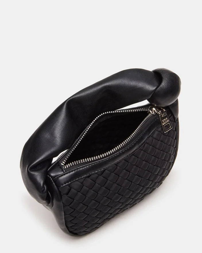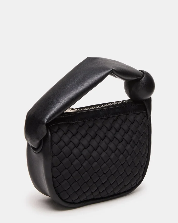 Vi presenterer Natasha-vesken, en miniveske med et elegant, puffet håndtak. Denne vesken er laget av slitesterkt vevd neopren og har dekket metallbeslag, og er både stilig og funksjonell. Glidelåslukningen holder eiendelene dine trygge når du er på farten. Oppgrader antrekket ditt med dette allsidige tilbehøret.