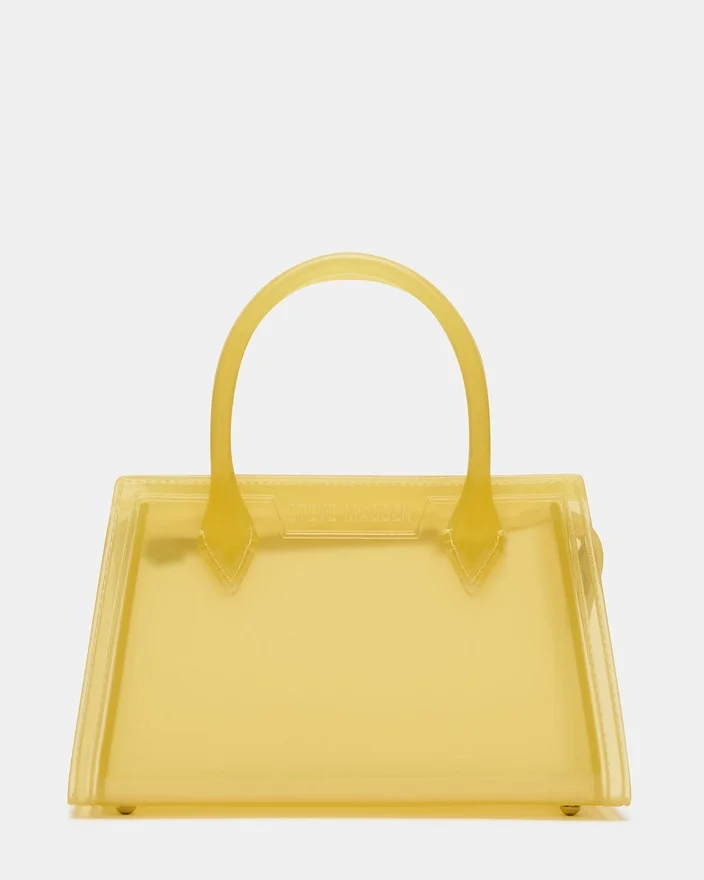 Peach Jelly Veske Yellow er et moderne must-have for den moderne minimalisten. Denne kompakte jelly-silhuetten har et strukturert, rørformet design med et raffinert håndtak på toppen, perfekt for allsidig håndbæring. Den avtakbare kjede-crossbody-stroppen tilpasser seg din livsstil, enten du foretrekker å bære den over skulderen eller i hånden. Den er gjennomtenkt proporsjonert slik at du får plass til telefonen din med god plass til overs, og det ufôrede interiøret eliminerer unødvendige rom for strømlinjeformet enkelhet. Et sofistikert aksentstykke som løfter enhver garderobe med sin dristige farge og arkitektoniske konstruksjon.