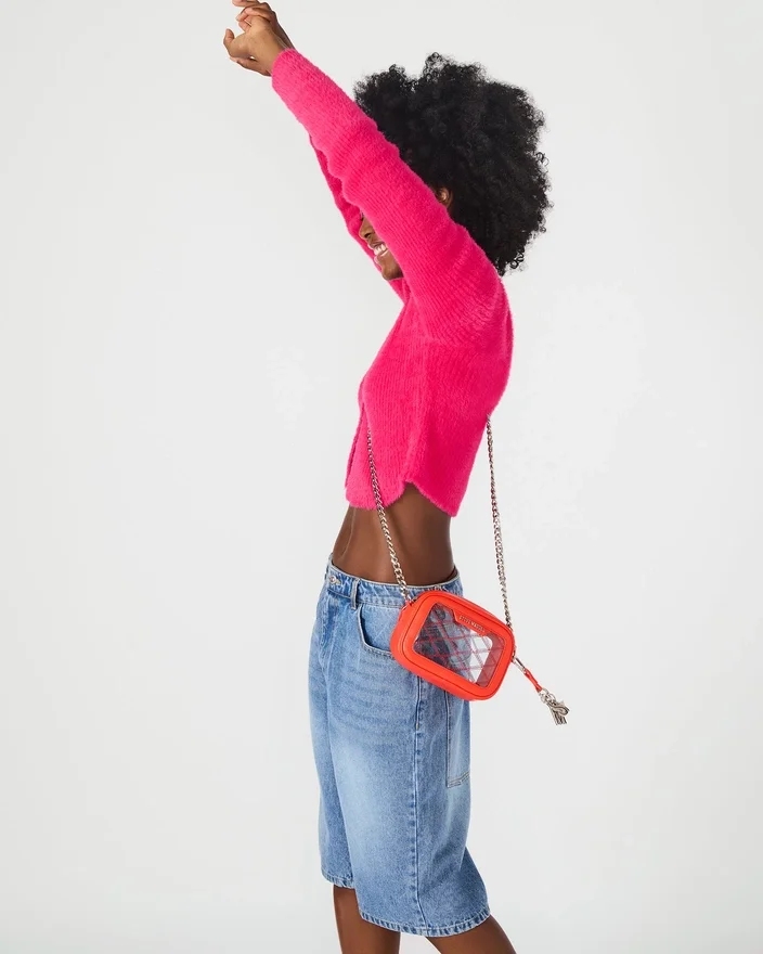 Jelly Bag er en stilig og funksjonell, gjennomsiktig Crossbody-veske for kamera som holder det viktigste trygt med glidelås på toppen. Det strukturerte, skimrende designet og de matte metallbeslagene gir et sofistikert preg, mens de quiltede sømmene tilfører et stilig og trendy element. Denne vesken er det perfekte valget for en kampdag eller konsert, da den oppfyller alle stadionkrav og leveres med en justerbar skulderrem for ekstra allsidighet.