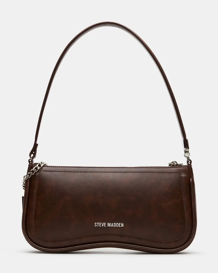 Angel Bag Brown Distressed har et skulpturert design med glidelås på toppen for sikker og stilig tilgang. Inne i vesken gir en innvendig lomme på bakveggen organisert oppbevaring for det viktigste. Et karakteristisk logo-kjedeanheng gir et raffinert, profesjonelt preg som kompletterer den elegante silhuetten, noe som gjør denne skuldervesken både funksjonell og sofistikert til hverdagsbruk.