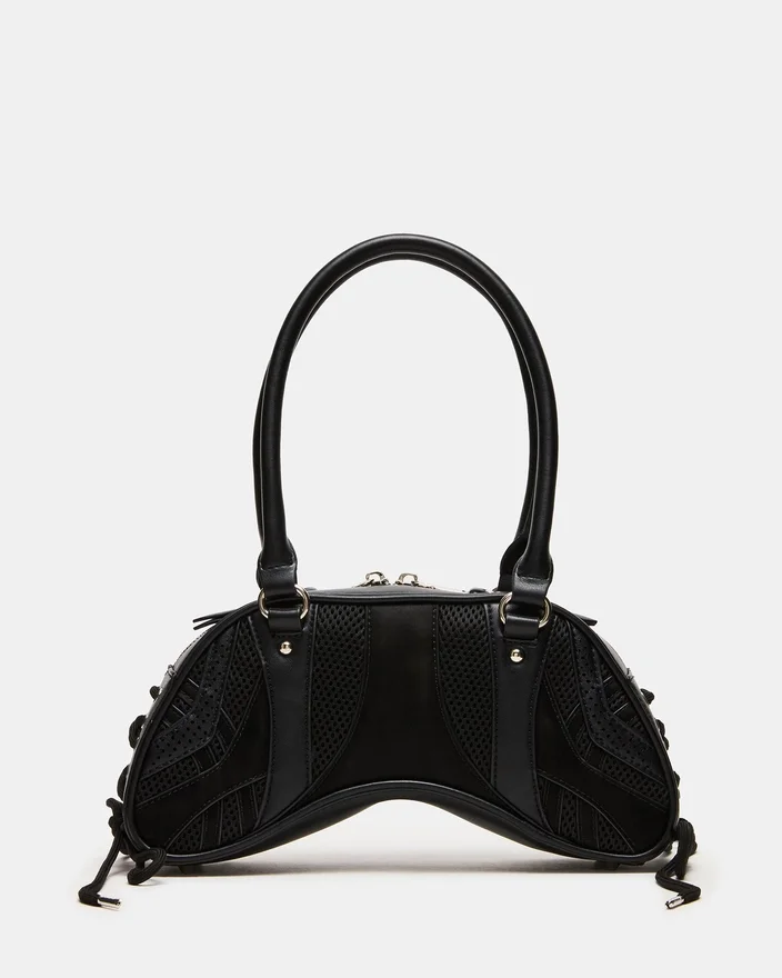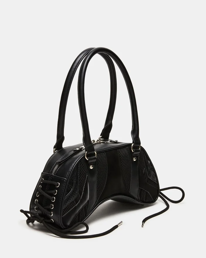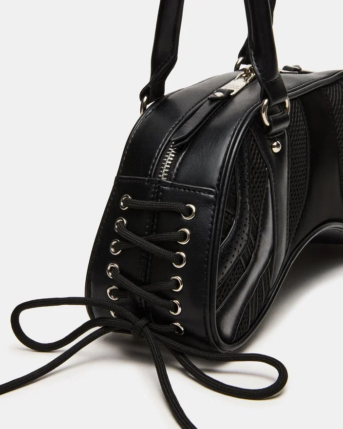 Oppgrader tilbehørssamlingen din med Kody Bag Black. Denne sofistikerte skuldervesken har praktiske rørformede stropper og karakteristisk snøring med øyler langs sidene for et interessant uttrykk. Spennedetaljen foran gir et snev av edgy raffinement, mens den sikre glidelåsen på toppen sørger for at det viktigste du har med deg, forblir beskyttet. Allsidig nok til både dag- og kveldsbruk.