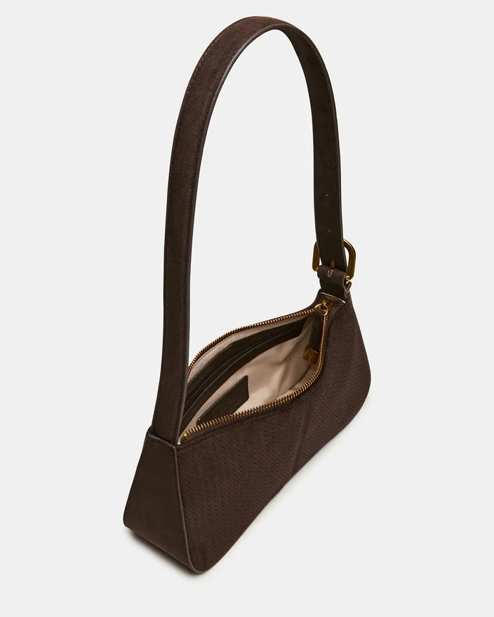 Tanzie vevd veske i sjokoladebrun kombinerer tidløs stil med praktisk funksjonalitet. Denne skuldervesken har en stropp med tofarget spenne som gir et visuelt løft til ethvert antrekk. Den sikre glidelåslukningen holder det viktigste trygt mens du er på farten. Denne vesken er perfekt til hverdagsbruk og passer like godt på jobb som på helgeturer.